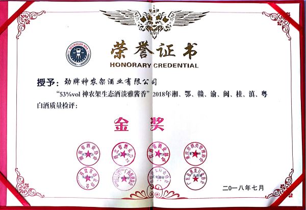 2018年鄂、湘、贛、閩、渝、桂、滇、粵白酒質量檢評金獎