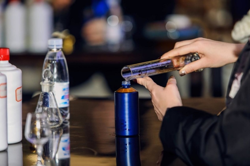 在聲色俱佳的棒槌舞開場后,講解員通過專業的酒文化講解,帶領嘉賓們沉浸體驗DIY調酒,讓大家面對面感受到調酒魅力,現場品嘗,品味優質醬酒。嘉賓們興趣盎然,按照比例調配專屬自己的醬酒,親自封蓋簽名,記錄美好期許。